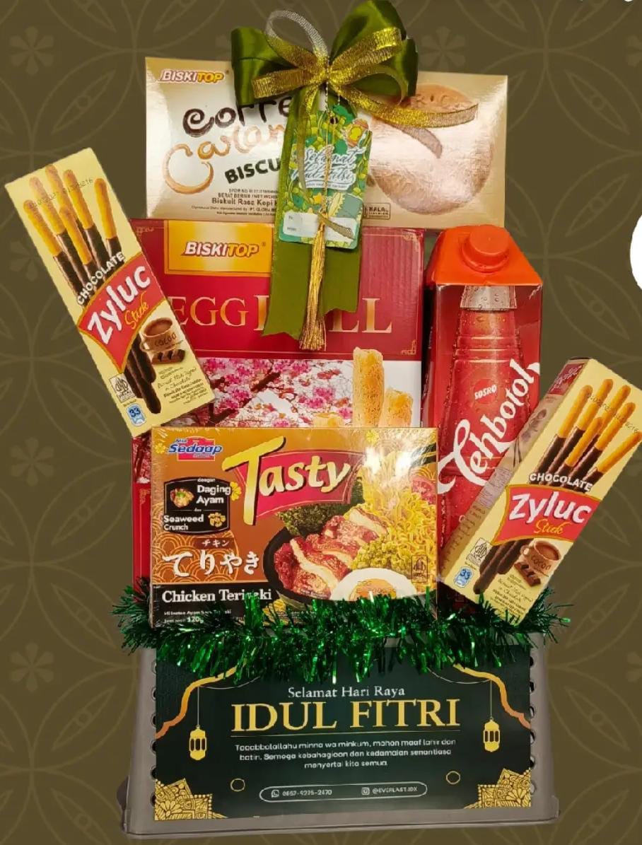 FREE Keranjang, Pita & kartu Ucapan. Isi: Mangkuk (2pcs), Pocky (2pcs), Biskuit Roma Cream, Syrup 1 Botol.